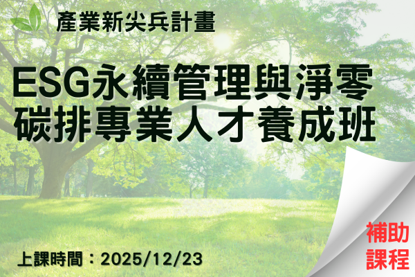 【產業新尖兵】ESG永續管理與淨零碳排專業人才養成班