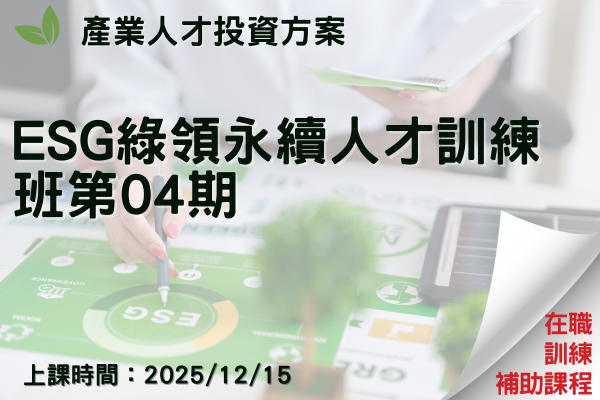 【產業人才投資方案】ESG綠領永續人才訓練班第04期