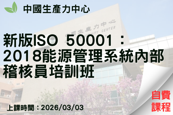 新版ISO 50001:2018能源管理系統內部稽核員培訓班-需考試