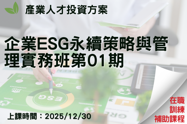 【產業人才投資方案】企業ESG永續策略與管理實務班第01期